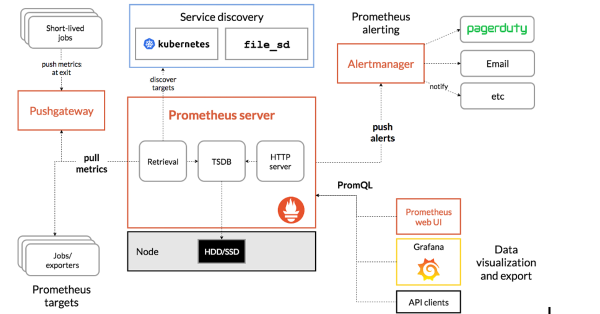 Prometheus is an open-source event monitoring and alerting tool that was originally developed at SoundCloud starting in 2012, inspired by the Borgmon tool used at Google. Prometheus has been a Cloud Native Computing Foundation (CNCF) project since 2016; it was the second hosted project after Kubernetes. While this blog discusses Prometheus in the context of Kubernetes monitoring, it can satisfy a wide variety of monitoring needs.Prometheus collects and stores the metrics you specify as time series data. Metrics can be analyzed to understand the operational state of your cluster and its components.An important focus of Prometheus is reliability. This helps ensure that Prometheus remains accessible if other things are misbehaving in your environment. Each Prometheus server is stand alone. A local time series database makes it independent from remote storage or other remote services. This makes it useful for rapidly identifying issues and receiving real-time feedback on system performance for the clusters and apps being monitored.The main components of Prometheus, including the Prometheus server and the Alertmanager, are shown in the figure below. Prometheus also provides a Pushgateway, which allows short-lived and batch jobs to be monitored. The Prometheus client library supports instrumenting application code. A powerful query language (PromQL) makes it possible to easily query Prometheus and drill down to understand what’s happening. While Prometheus offers a web UI, it is often used in combination with Grafana for more flexible visualization.