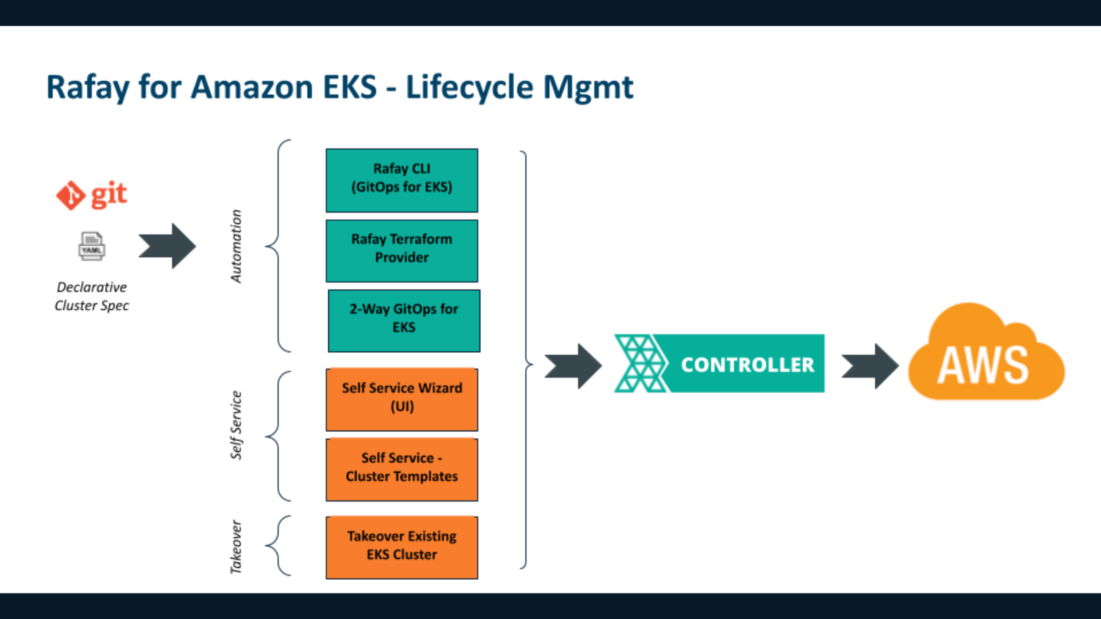 Rafay offers a managed EKS lifecycle, which includes provisioning, scaling, and upgrading EKS clusters. With Rafay, you can easily schedule and manage upgrades without the need for manual intervention or complex scripts.
