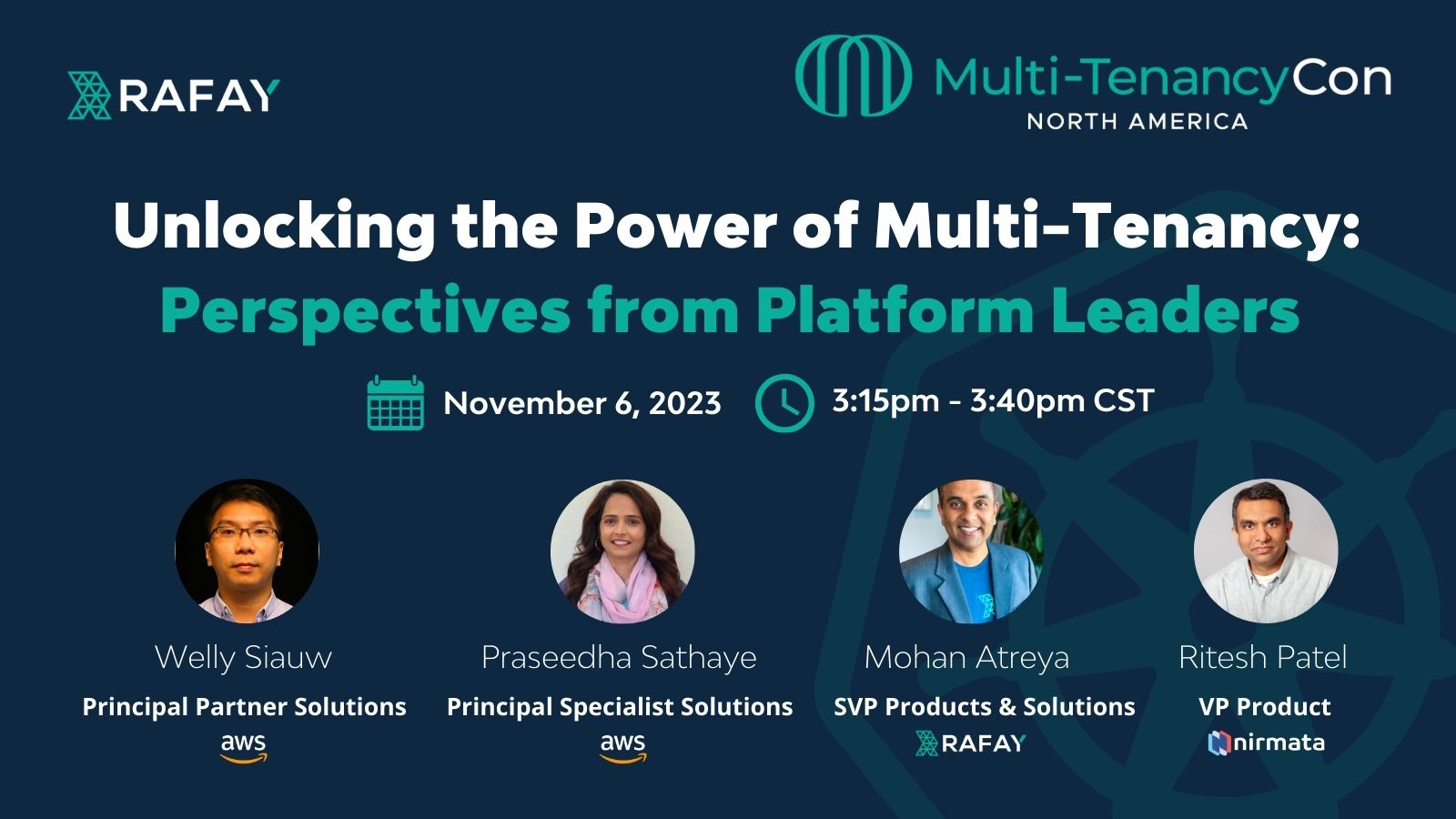 Meet platform leaders from Nirmata, AWS, and team Rafay and listen to their insights, experiences, and best practices in harnessing the full potential of multitenancy.