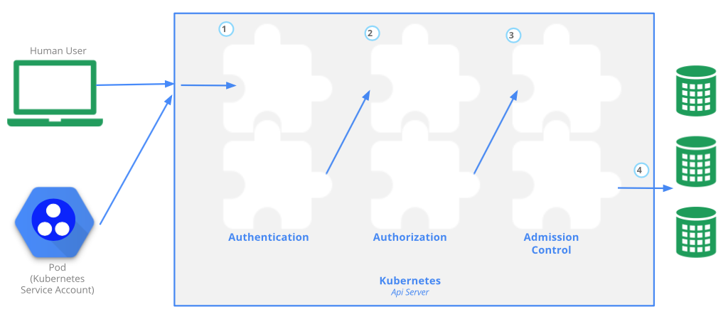 Image Source: kubernetes.ioOnce transport is secure, Kubernetes includes all the necessary hooks to implement Kubernetes Zero Trust to control API Server access for each Kubernetes cluster. These hooks fall into four key areas:
