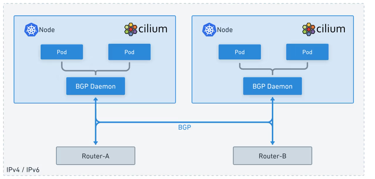For LoadBalancer-type services specifically, Cilium integrates with external BGP routers or MetalLB-style Layer 2 neighbor advertisement to expose services on a pool of external IPs.