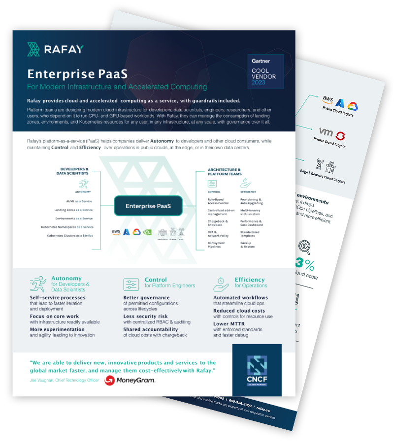 As enterprises modernize their applications, they are quickly realizing the significant increase in the cost and resources required to manage Kubernetes clusters. The Rafay Platform's SaaS-first approach enables companies to gain efficiencies from Kubernetes almost immediately, thus speeding digital transformation initiatives while keeping operating costs low.
